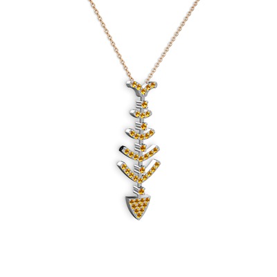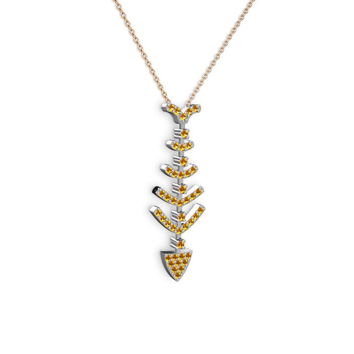 Sitrin 18 ayar beyaz altın kolye (40 cm gümüş rolo zincir)