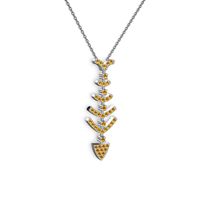 Sitrin 8 ayar beyaz altın kolye (40 cm gümüş rolo zincir)
