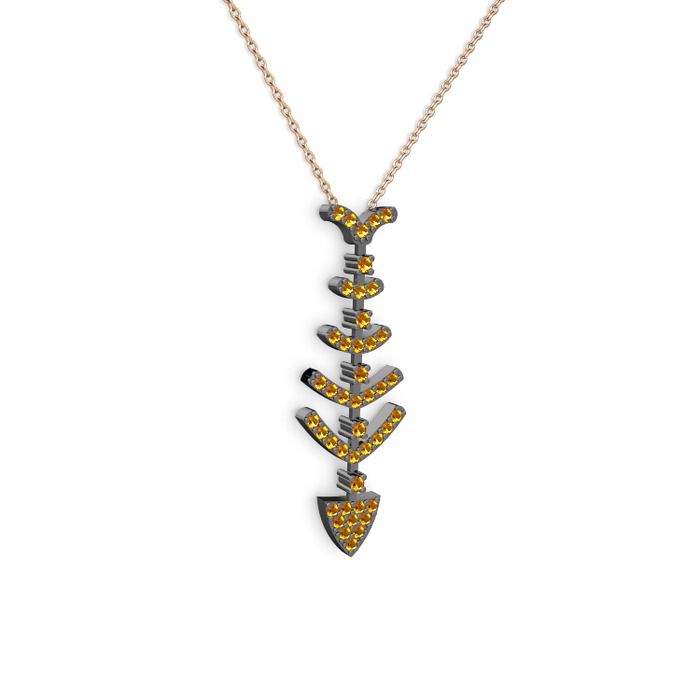 Sitrin 925 ayar siyah rodyum kaplama gümüş kolye (40 cm rose altın rolo zincir)
