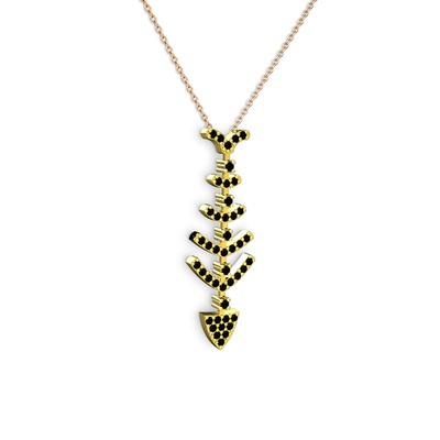 Siyah zirkon 925 ayar altın kaplama gümüş kolye (40 cm gümüş rolo zincir)