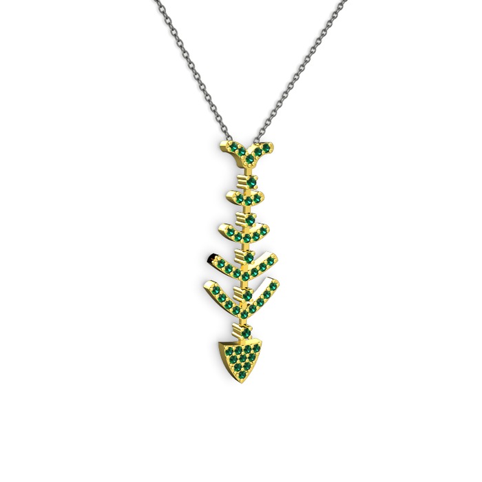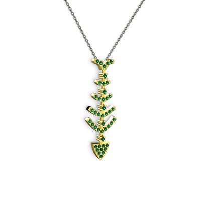 Yeşil kuvars 14 ayar altın kolye (40 cm gümüş rolo zincir)