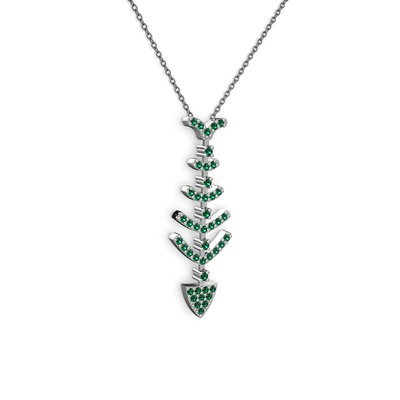Yeşil kuvars 14 ayar beyaz altın kolye (40 cm gümüş rolo zincir)