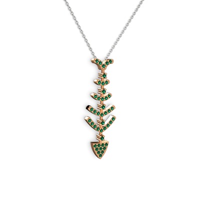 Yeşil kuvars 14 ayar rose altın kolye (40 cm beyaz altın rolo zincir)