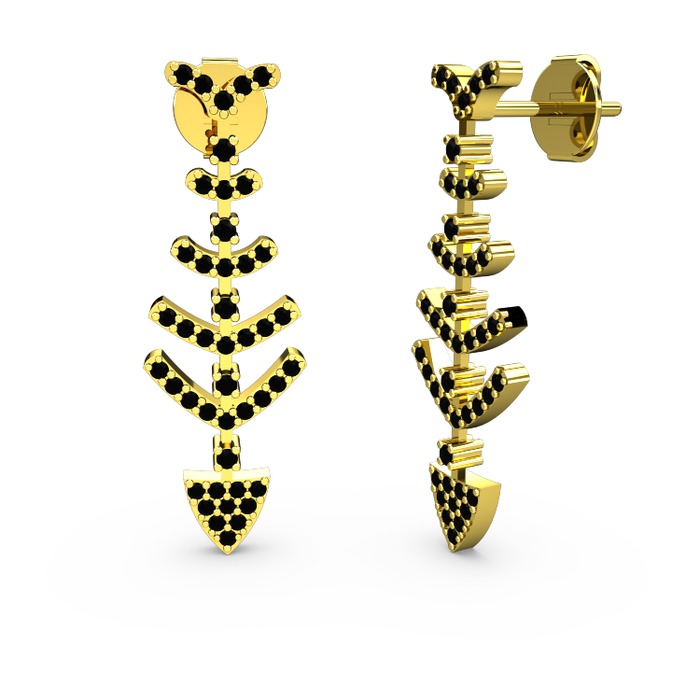 Siyah zirkon 925 ayar altın kaplama gümüş küpe