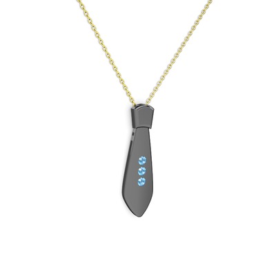Akuamarin 925 ayar siyah rodyum kaplama gümüş kolye (40 cm altın rolo zincir)