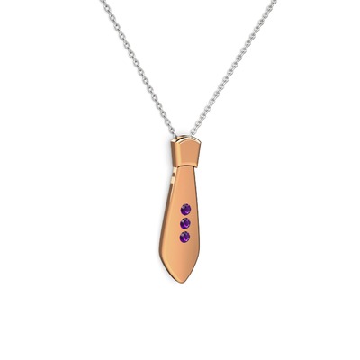Taşlı Kravat Kolye - Ametist 925 ayar rose altın kaplama gümüş kolye (40 cm gümüş rolo zincir)