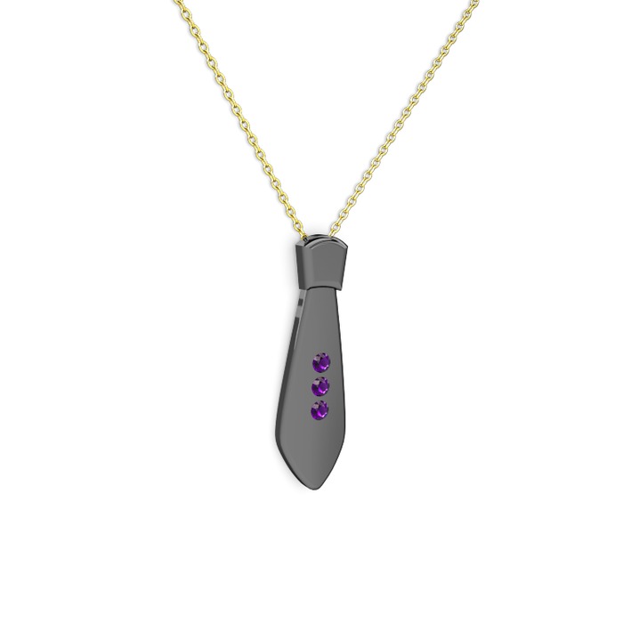Ametist 925 ayar siyah rodyum kaplama gümüş kolye (40 cm altın rolo zincir)