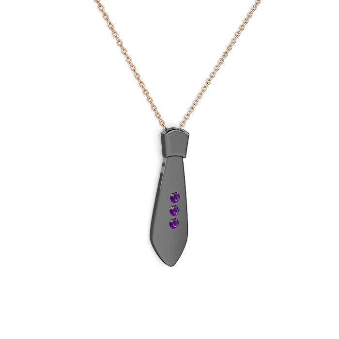 Ametist 925 ayar siyah rodyum kaplama gümüş kolye (40 cm gümüş rolo zincir)