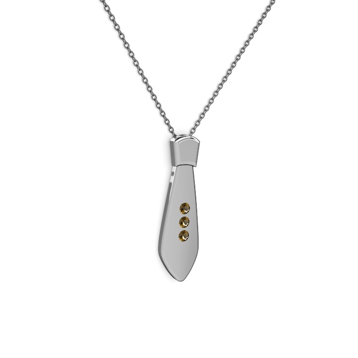 Dumanlı kuvars 14 ayar beyaz altın kolye (40 cm gümüş rolo zincir)