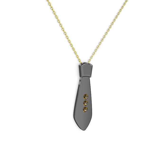 Dumanlı kuvars 925 ayar siyah rodyum kaplama gümüş kolye (40 cm altın rolo zincir)