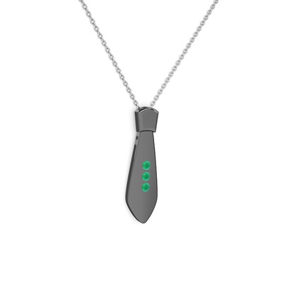 Kök zümrüt 925 ayar siyah rodyum kaplama gümüş kolye (40 cm beyaz altın rolo zincir)