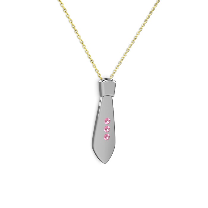 Pembe kuvars 8 ayar beyaz altın kolye (40 cm altın rolo zincir)