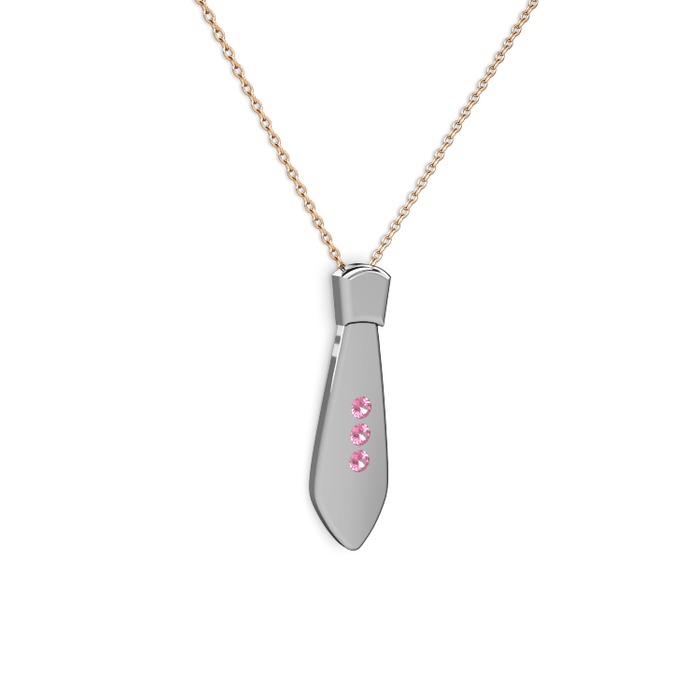 Pembe kuvars 8 ayar beyaz altın kolye (40 cm rose altın rolo zincir)