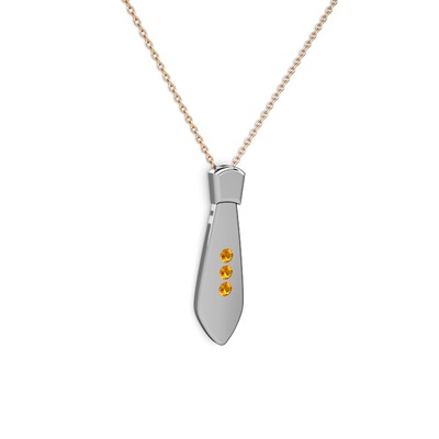 Sitrin 8 ayar beyaz altın kolye (40 cm rose altın rolo zincir)
