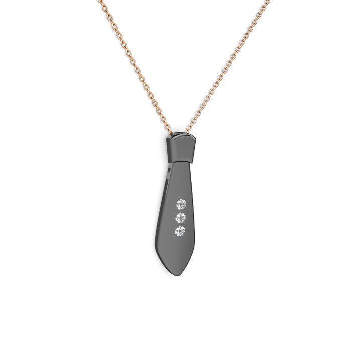 Swarovski 925 ayar siyah rodyum kaplama gümüş kolye (40 cm rose altın rolo zincir)