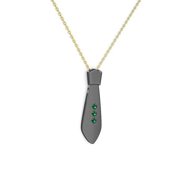 Yeşil kuvars 925 ayar siyah rodyum kaplama gümüş kolye (40 cm altın rolo zincir)