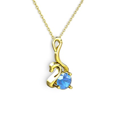 Taşlı Kuğu Kolye - Akuamarin 925 ayar altın kaplama gümüş kolye (40 cm altın rolo zincir)