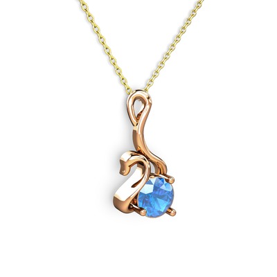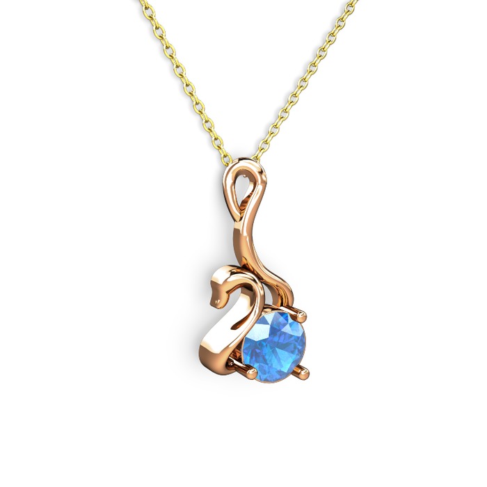Akuamarin 925 ayar rose altın kaplama gümüş kolye (40 cm gümüş rolo zincir)