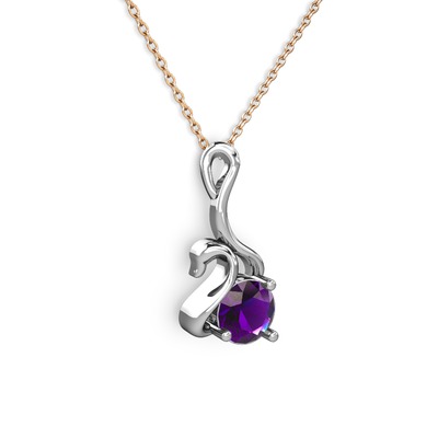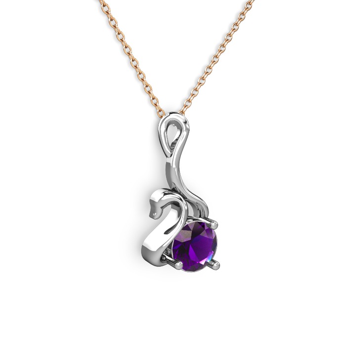 Ametist 14 ayar beyaz altın kolye (40 cm rose altın rolo zincir)