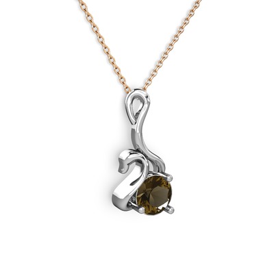 Dumanlı kuvars 8 ayar beyaz altın kolye (40 cm gümüş rolo zincir)