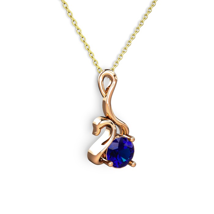 Lab safir 8 ayar rose altın kolye (40 cm altın rolo zincir)