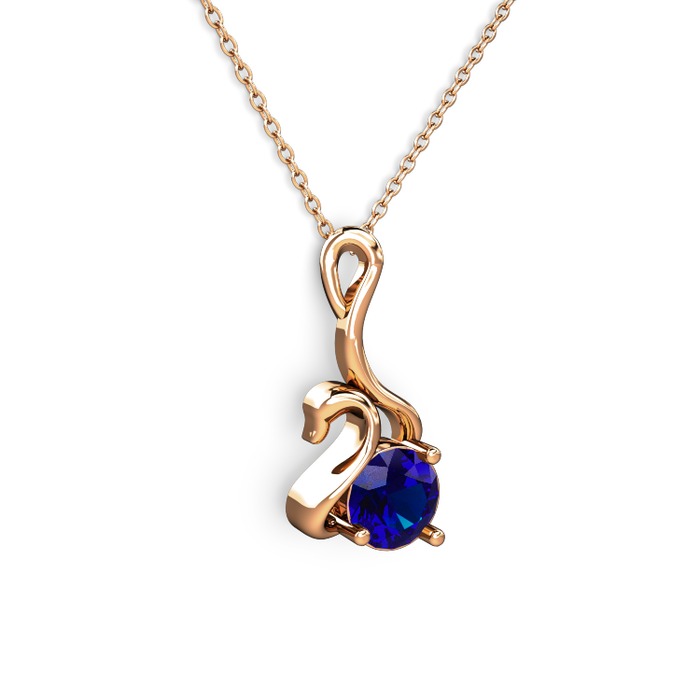 Lab safir 8 ayar rose altın kolye (40 cm rose altın rolo zincir)