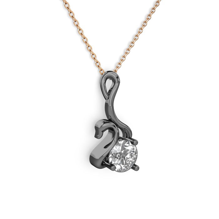 Pırlanta 925 ayar siyah rodyum kaplama gümüş kolye (0.92 karat, 40 cm rose altın rolo zincir)