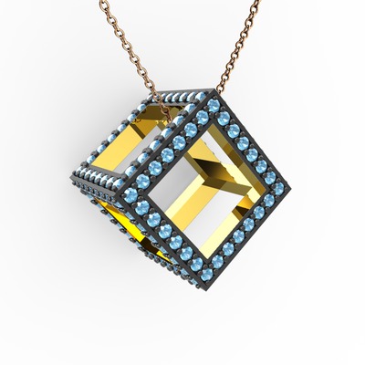 Akuamarin 14 ayar altın kolye (40 cm rose altın rolo zincir)