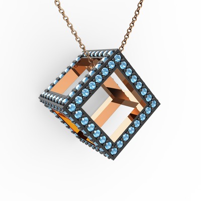 Akuamarin 14 ayar rose altın kolye (40 cm rose altın rolo zincir)