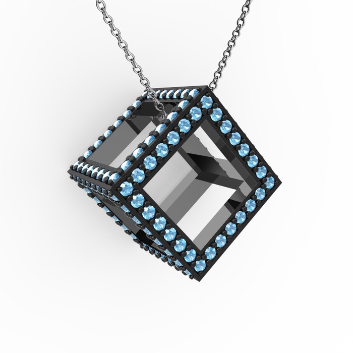 Akuamarin 925 ayar siyah rodyum kaplama gümüş kolye (40 cm gümüş rolo zincir)