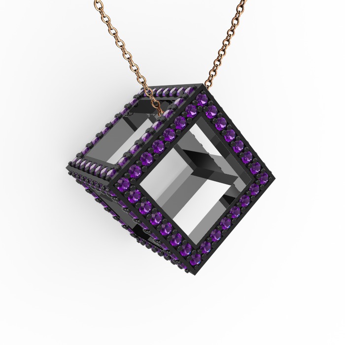 Ametist 925 ayar siyah rodyum kaplama gümüş kolye (40 cm rose altın rolo zincir)