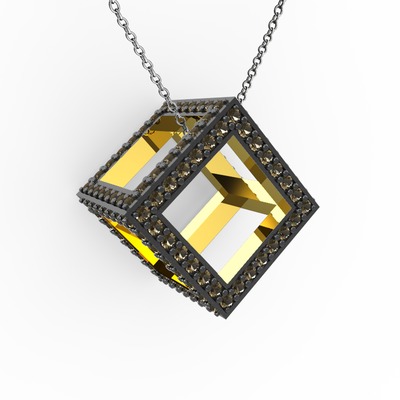Dumanlı kuvars 925 ayar altın kaplama gümüş kolye (40 cm gümüş rolo zincir)
