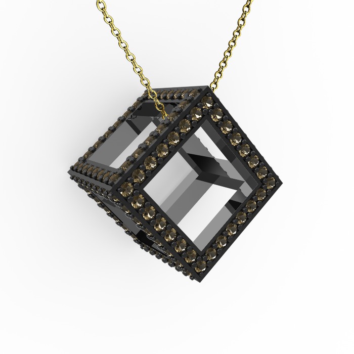 Dumanlı kuvars 925 ayar siyah rodyum kaplama gümüş kolye (40 cm altın rolo zincir)
