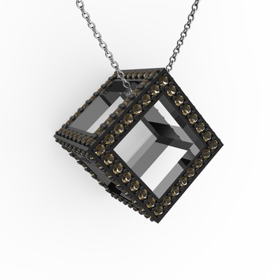 Dumanlı kuvars 925 ayar siyah rodyum kaplama gümüş kolye (40 cm beyaz altın rolo zincir)
