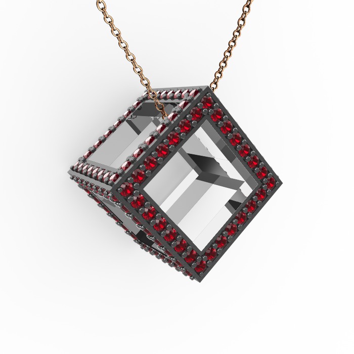 Garnet 18 ayar beyaz altın kolye (40 cm rose altın rolo zincir)