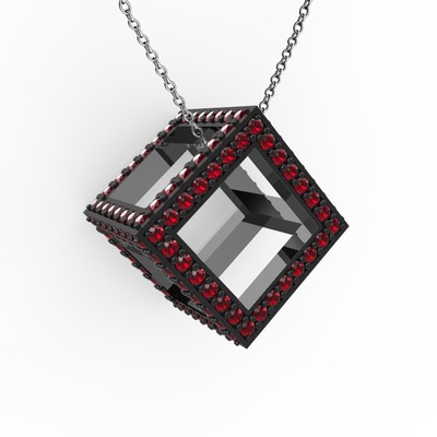 Garnet 925 ayar siyah rodyum kaplama gümüş kolye (40 cm beyaz altın rolo zincir)