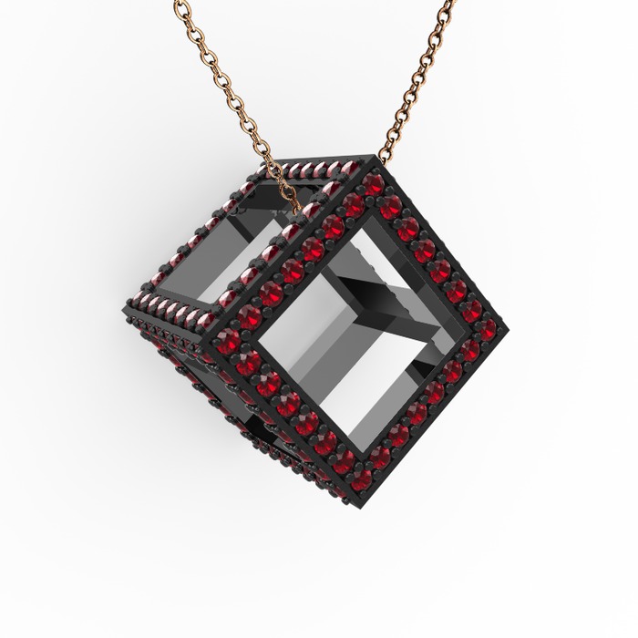 Garnet 925 ayar siyah rodyum kaplama gümüş kolye (40 cm rose altın rolo zincir)