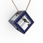 Lab safir 8 ayar beyaz altın kolye (40 cm rose altın rolo zincir)