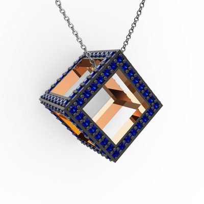 Lab safir 8 ayar rose altın kolye (40 cm gümüş rolo zincir)