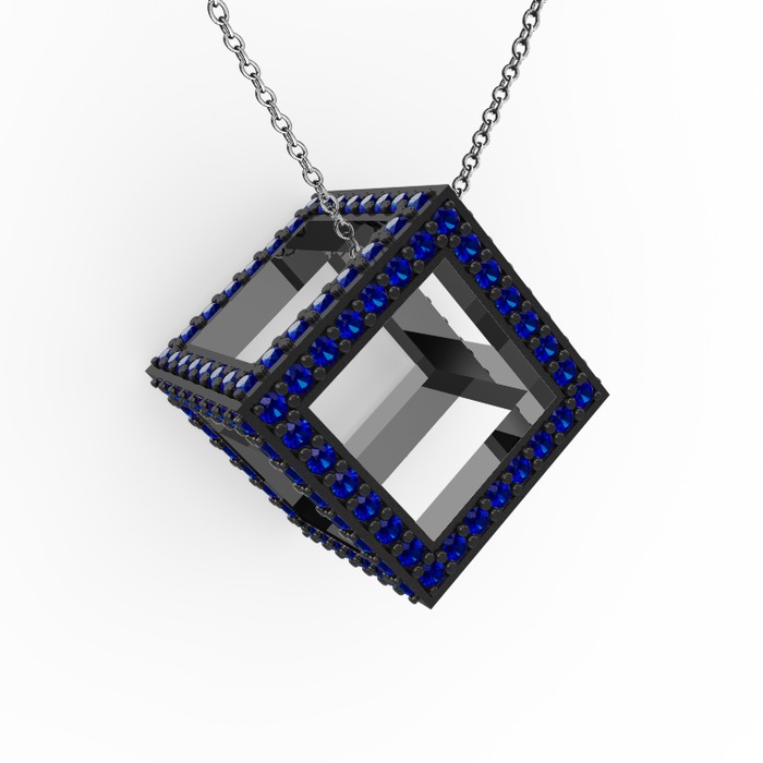 Lab safir 925 ayar siyah rodyum kaplama gümüş kolye (40 cm beyaz altın rolo zincir)