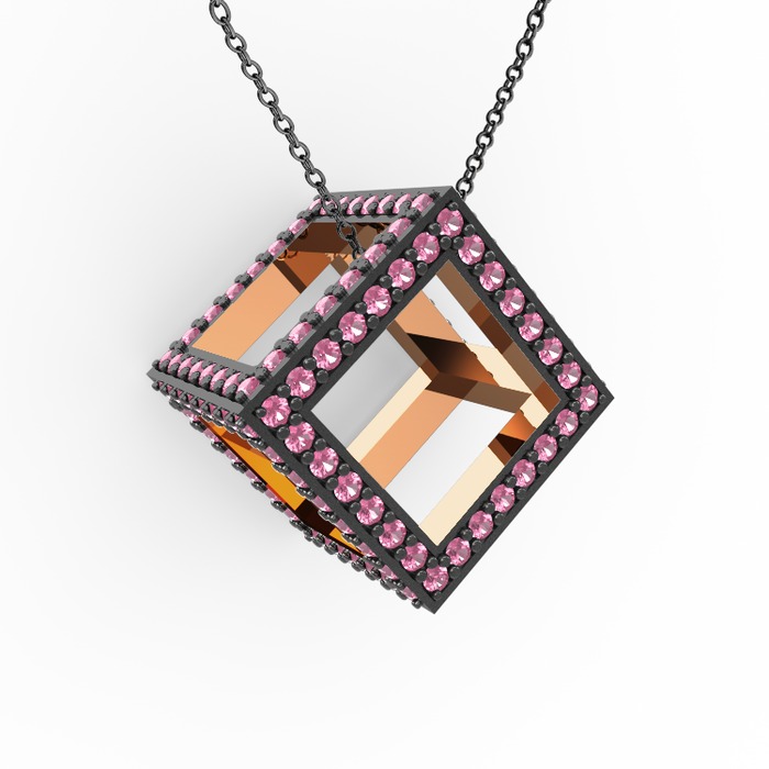 Pembe kuvars 18 ayar rose altın kolye (40 cm gümüş rolo zincir)