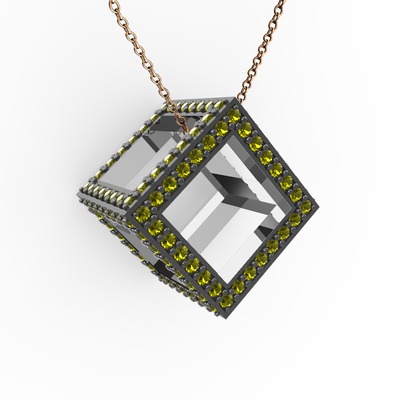 Peridot 925 ayar gümüş kolye (40 cm rose altın rolo zincir)