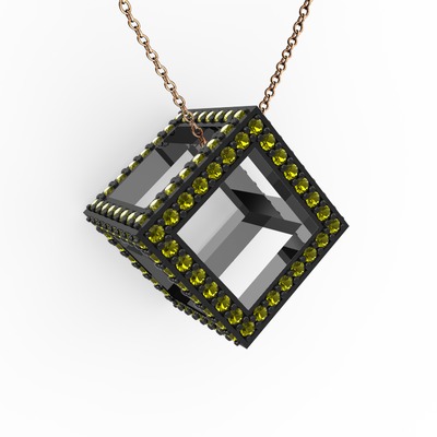 Peridot 925 ayar siyah rodyum kaplama gümüş kolye (40 cm rose altın rolo zincir)
