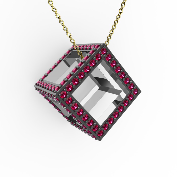 Rodolit garnet 18 ayar beyaz altın kolye (40 cm gümüş rolo zincir)