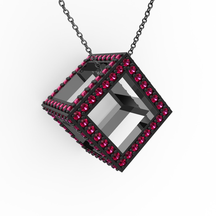 Rodolit garnet 925 ayar siyah rodyum kaplama gümüş kolye (40 cm gümüş rolo zincir)
