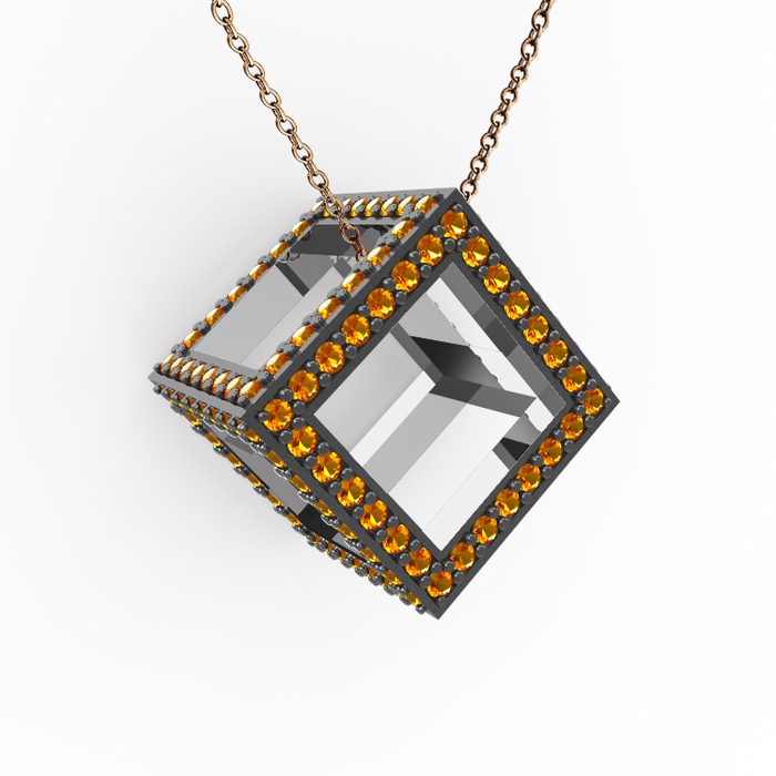 Sitrin 8 ayar beyaz altın kolye (40 cm gümüş rolo zincir)