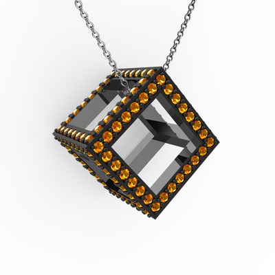 Sitrin 925 ayar siyah rodyum kaplama gümüş kolye (40 cm gümüş rolo zincir)
