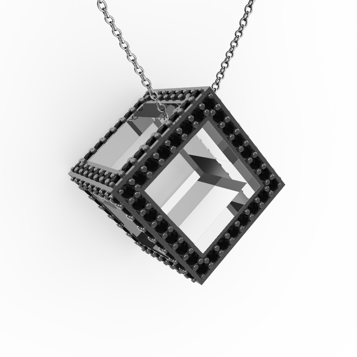 Siyah zirkon 8 ayar beyaz altın kolye (40 cm beyaz altın rolo zincir)