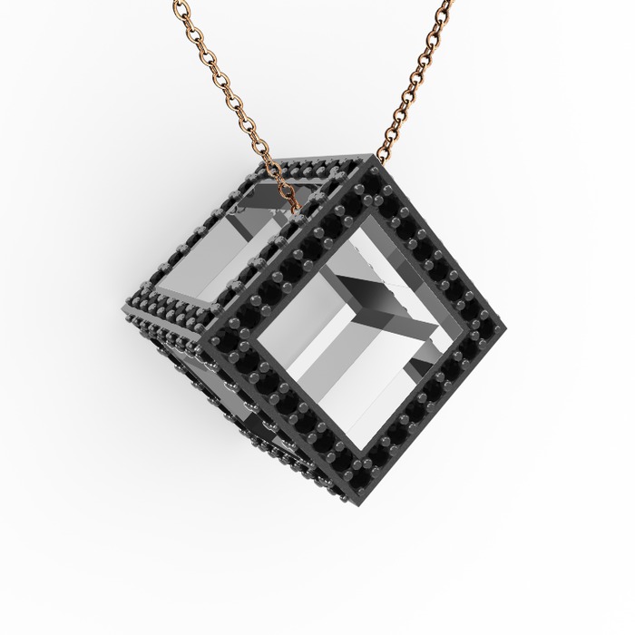 Siyah zirkon 8 ayar beyaz altın kolye (40 cm rose altın rolo zincir)