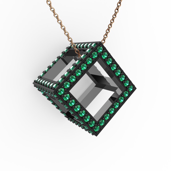 Yeşil kuvars 925 ayar siyah rodyum kaplama gümüş kolye (40 cm gümüş rolo zincir)
